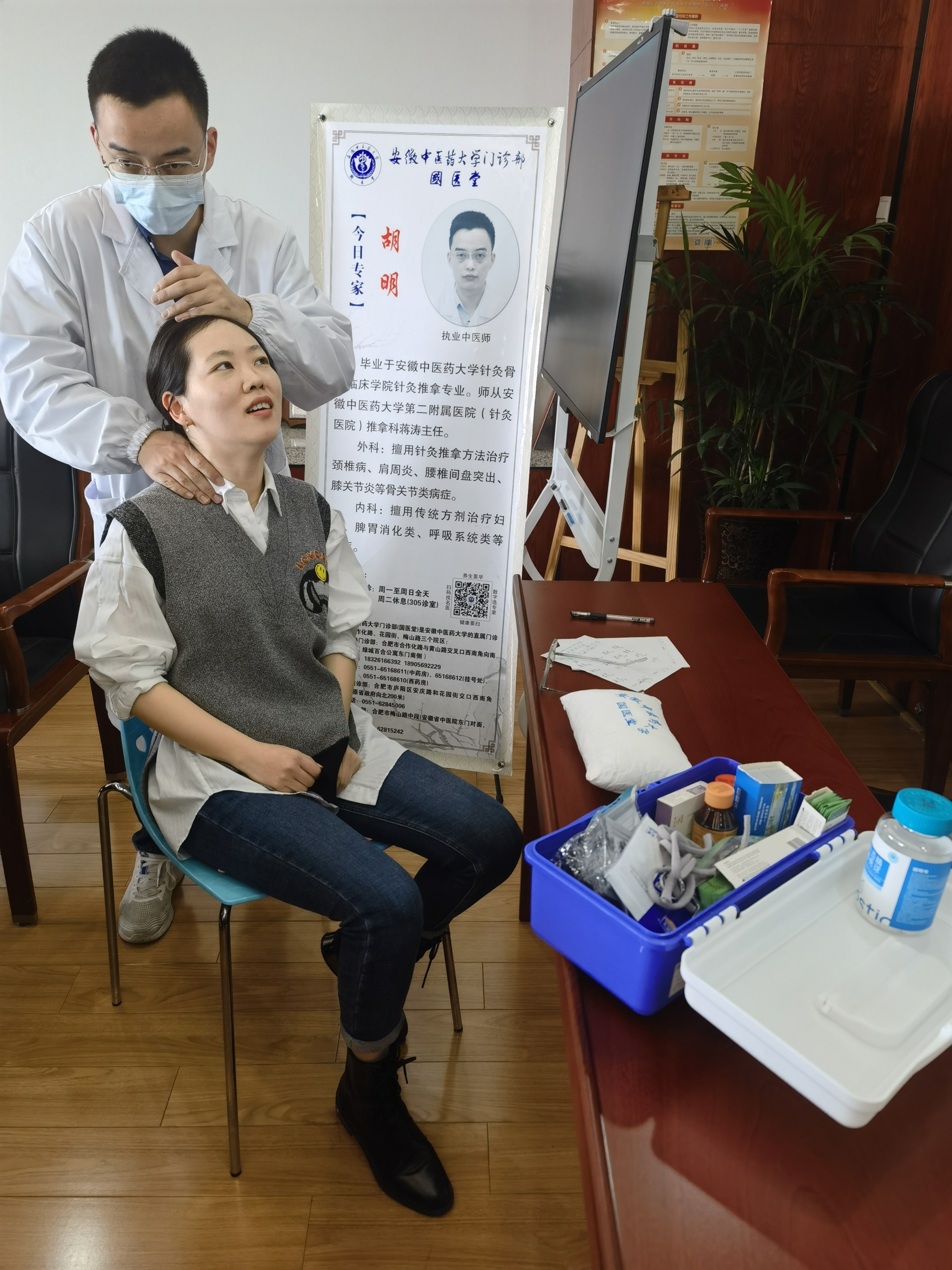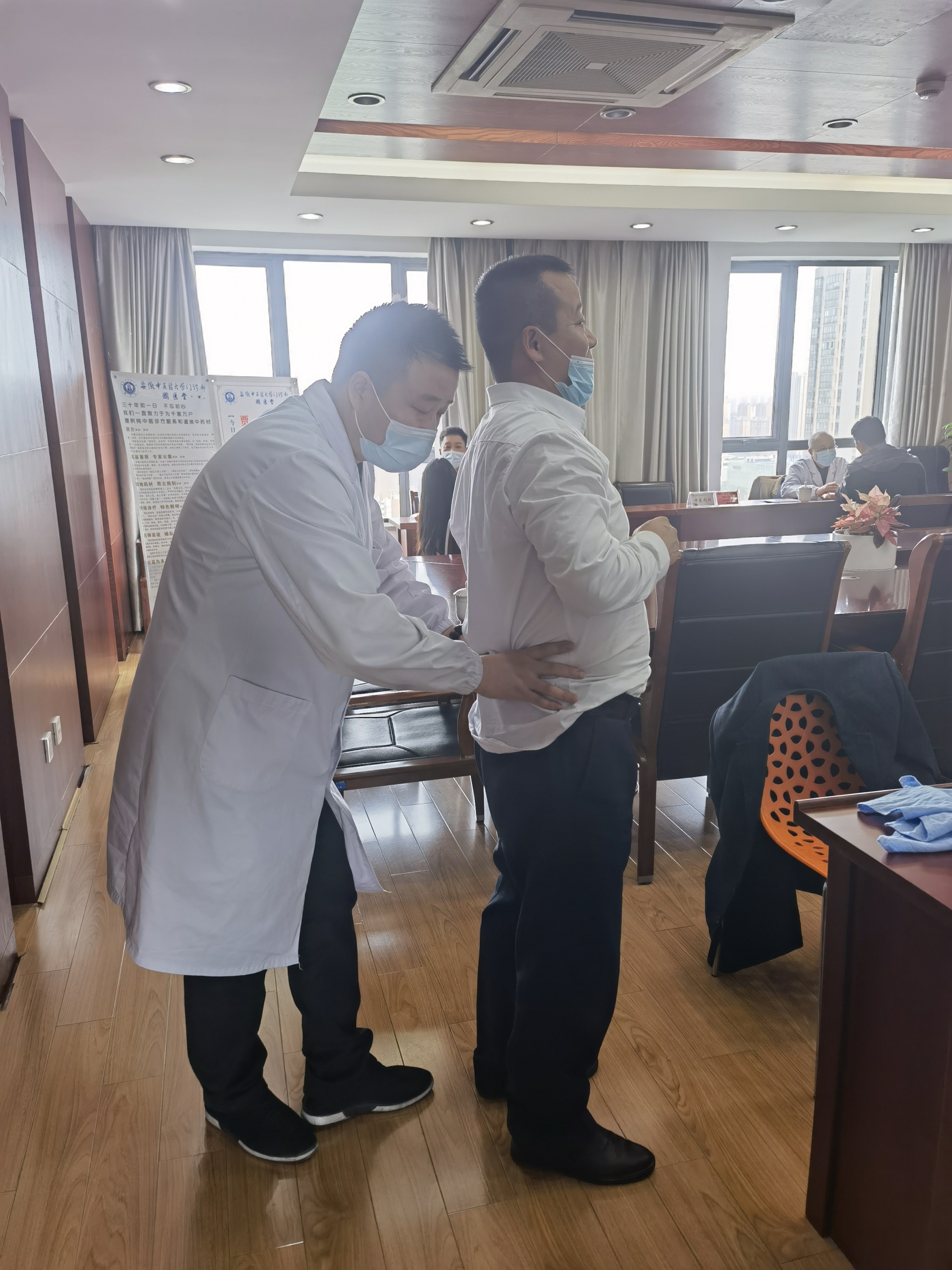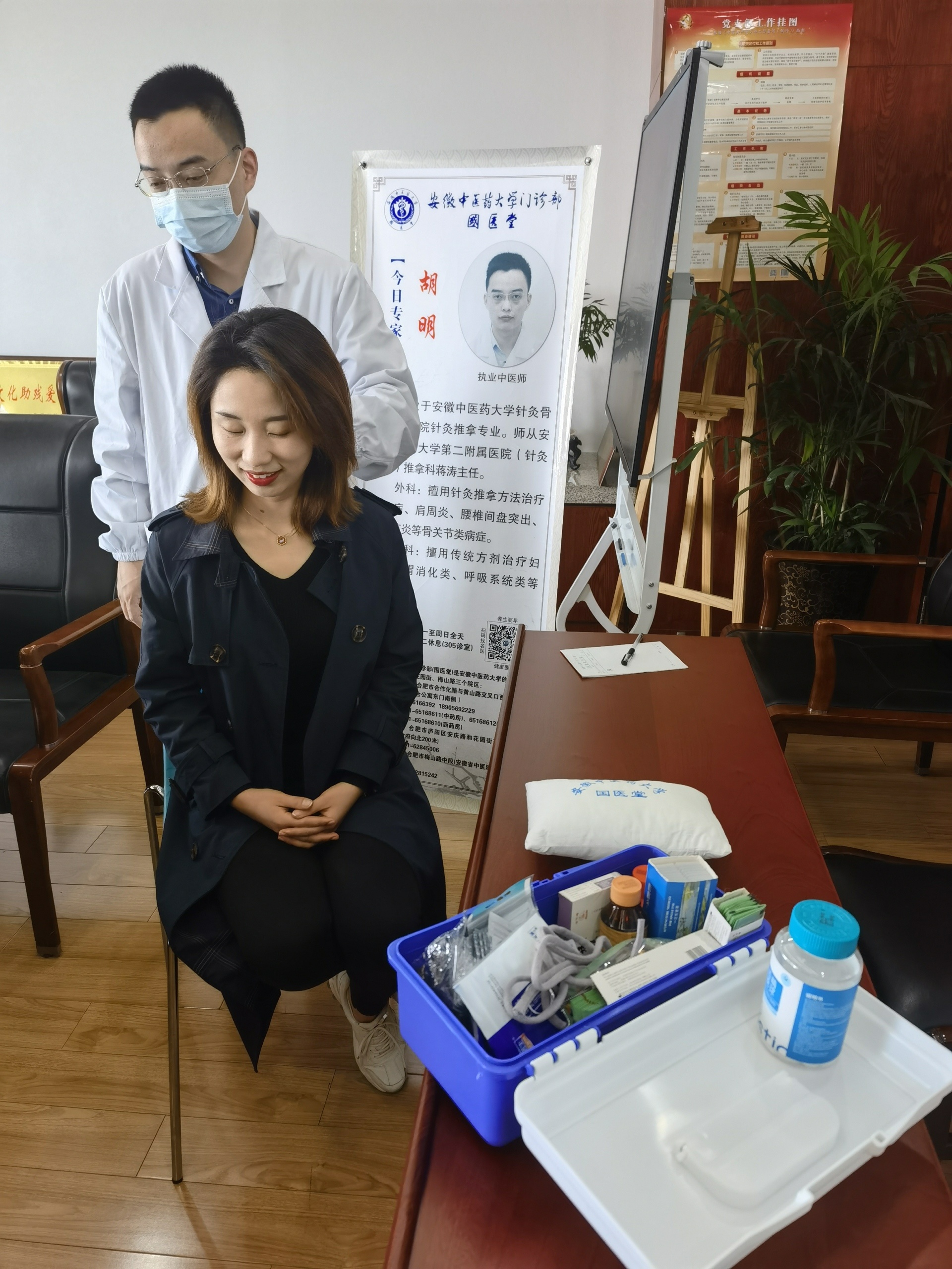 頸椎病、腰椎病、肩周炎是辦公室亞健康常見病,因此問診的員工最多,付賢忠醫(yī)師、胡明醫(yī)師耐心地位每一位員工講授中醫(yī)推拿知識,示范中醫(yī)肩頸推拿按摩手法,為現(xiàn)場大名員工提供中醫(yī)診療。