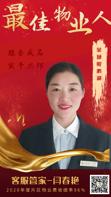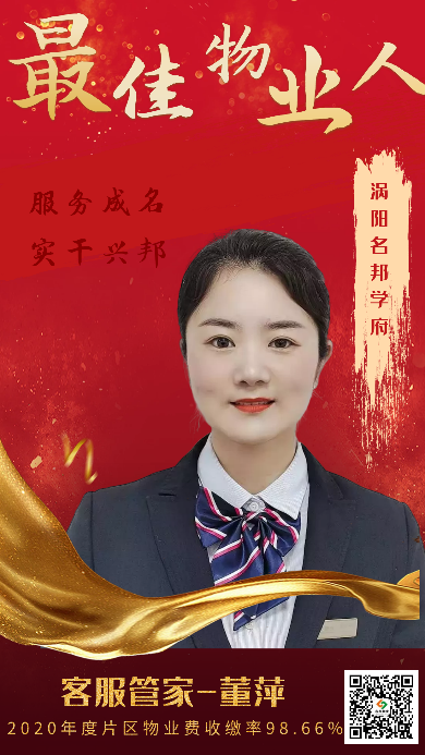 服務(wù)小故事:新冠疫情期間,董萍說的最多的一句話就是“您好,我是您的管家小董……”為減少業(yè)主出門次數(shù),做好防護(hù)隔離,她主動(dòng)上門溝通解釋,攬下配送日用品及菜品的活,飛奔在超市與住戶之間,業(yè)主家燃?xì)庥猛?,她又幫忙辦理燃?xì)獬渲?。持續(xù)的高壓、快節(jié)奏工作模式經(jīng)歷了近兩個(gè)月,而董萍早已習(xí)慣。她也是一位母親、女兒、妻子,也渴望陪在自己家人身邊,但面對(duì)疫情和廣大業(yè)主,她毅然選擇堅(jiān)守崗位,在沒有硝煙的戰(zhàn)場(chǎng)中,她從未害怕、從未退縮。董萍用小小的身軀,投入到抗疫的防線,舍小家顧大家。平凡的崗位上,業(yè)主記住了她的身影,更感受到她的貼心與用心,片區(qū)新高的收繳率便是對(duì)她付出的最大認(rèn)可。