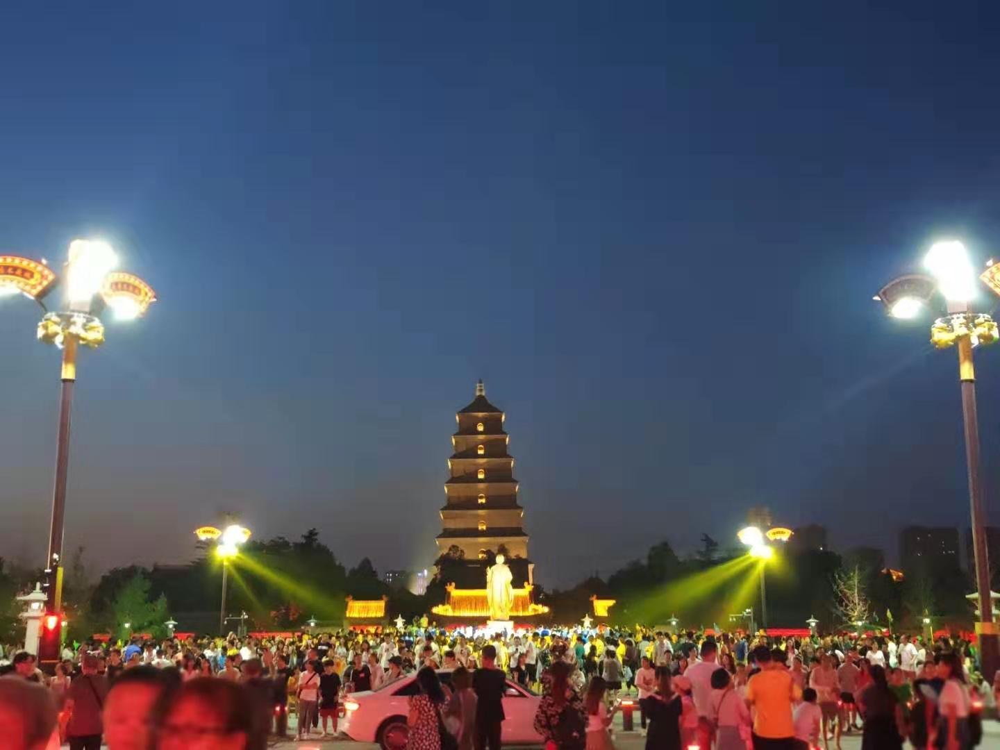 大雁塔又名“慈恩寺塔”,唐永徽三年(652年)玄奘為保存由天竺經(jīng)絲綢之路帶回長安的經(jīng)卷佛像主持修建了大雁塔,最初五層,后加蓋至九層,再后層數(shù)和高度又有數(shù)次變更,最后固定為今天所看到的七層塔身,通高64.517米,底層邊長25.5米。大雁塔與大唐不夜城相鄰,夜晚來這里,燈光絢爛,美不勝收!