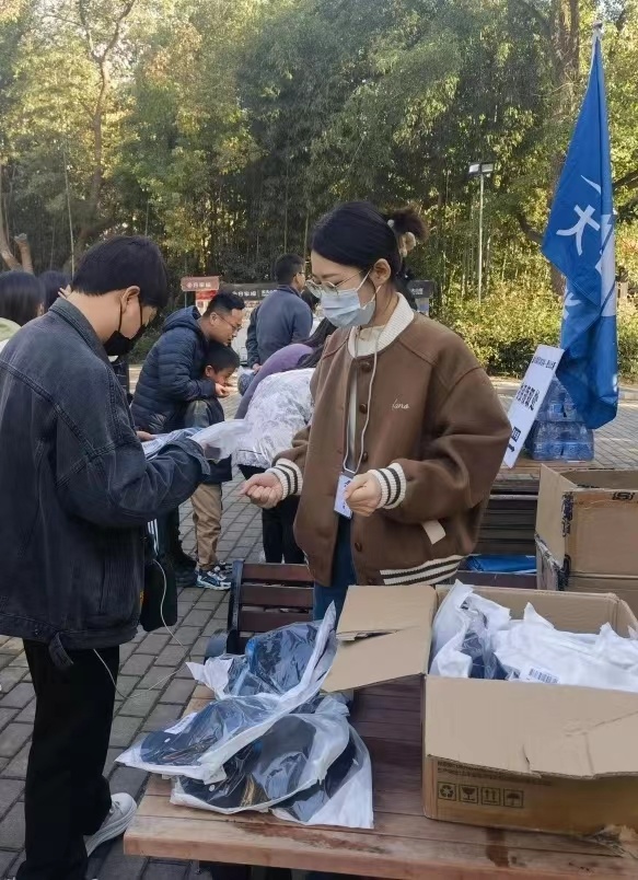 圖為參賽選手現(xiàn)場(chǎng)領(lǐng)取號(hào)碼牌和活動(dòng)物資