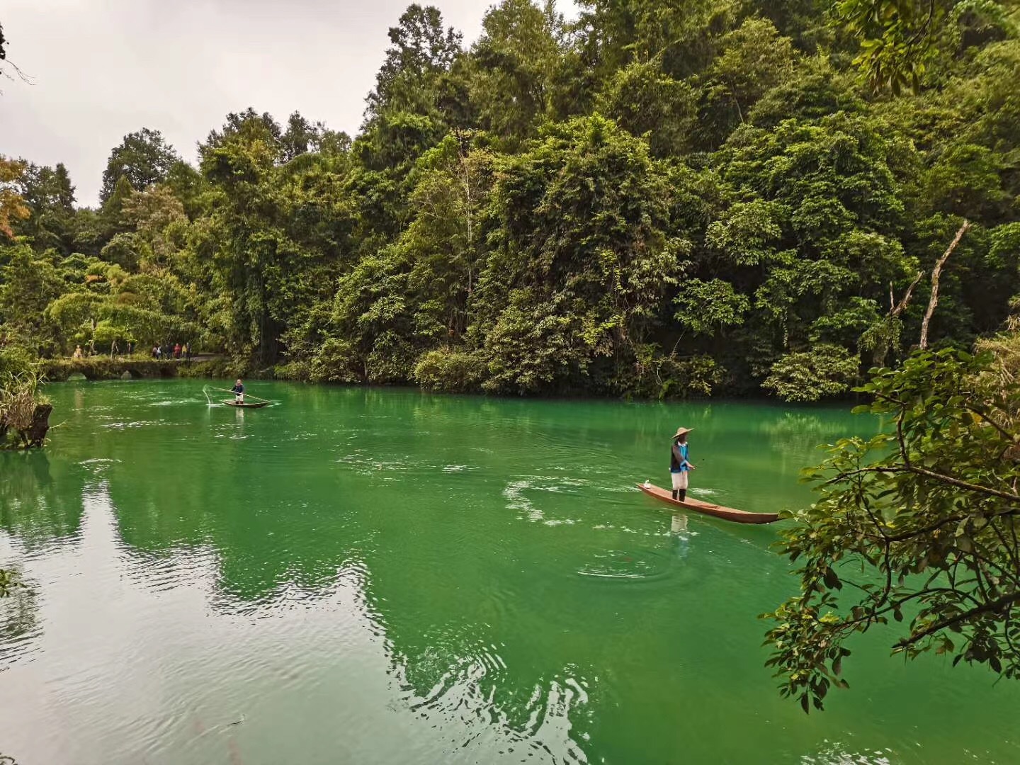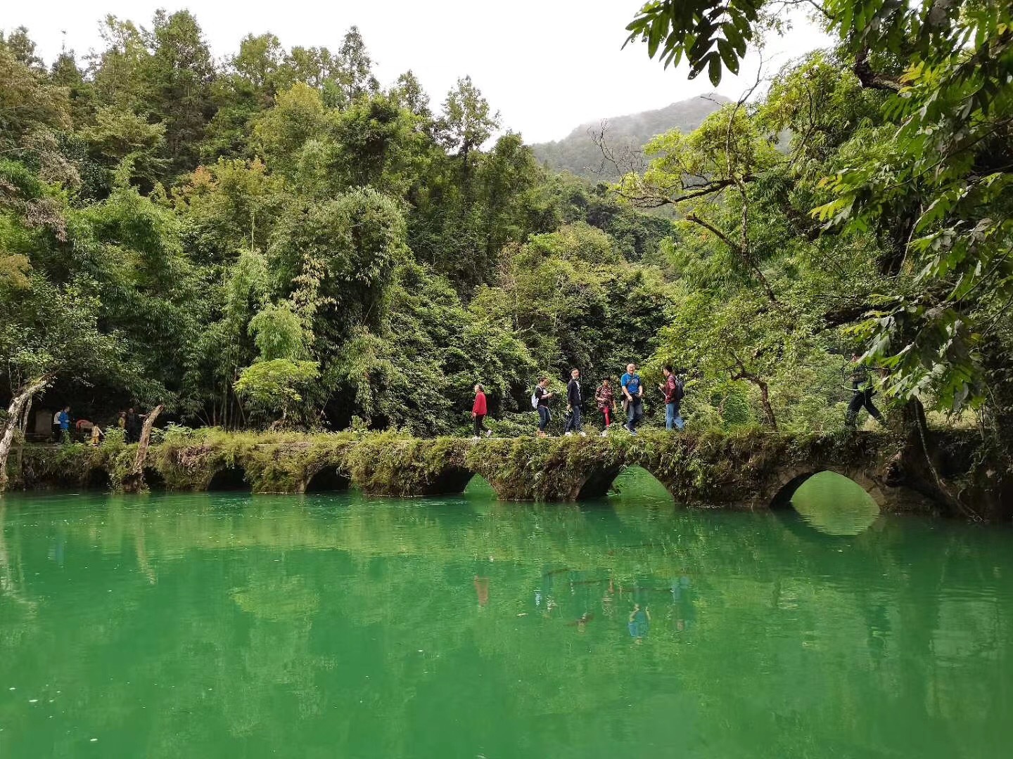 貴州迷人的景點(diǎn)可不止這些,第二天我們?nèi)チ死蟛ㄐ∑呖拙皡^(qū)和西江千戶苗寨。小七孔景區(qū)由水上森林、鴛鴦湖等小景點(diǎn)組成。遠(yuǎn)遠(yuǎn)地望過去,就能瞧見一座七孔古橋橫跨在河中間,橋身被綠色植物覆蓋,顯得古老而樸實。我們隨著湍急的水流一路向前,時不時還會停下腳步在那里靜靜地感受那美輪美奐的自然景色。