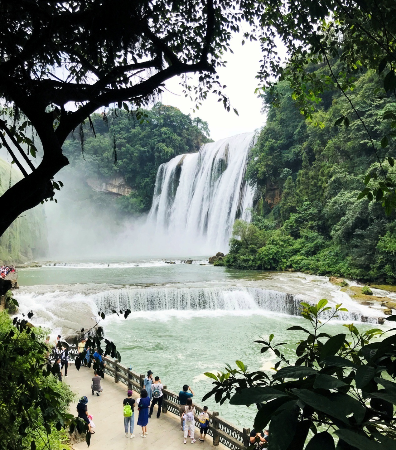 來到貴州,當然首先要去一睹久負盛名的黃果樹瀑布。第二天上午,我們便驅車兩個多小時抵達本次行程的第一站——黃果樹大瀑布景區(qū)。在景區(qū)門口,導游給我們介紹了“黃果樹”名字的由來,原來是因為當?shù)貜V泛分布著一種名為黃葛榕的植物,此樹結黃色的果子,不可食用,“黃果樹”則因黃葛榕的諧音而得名。