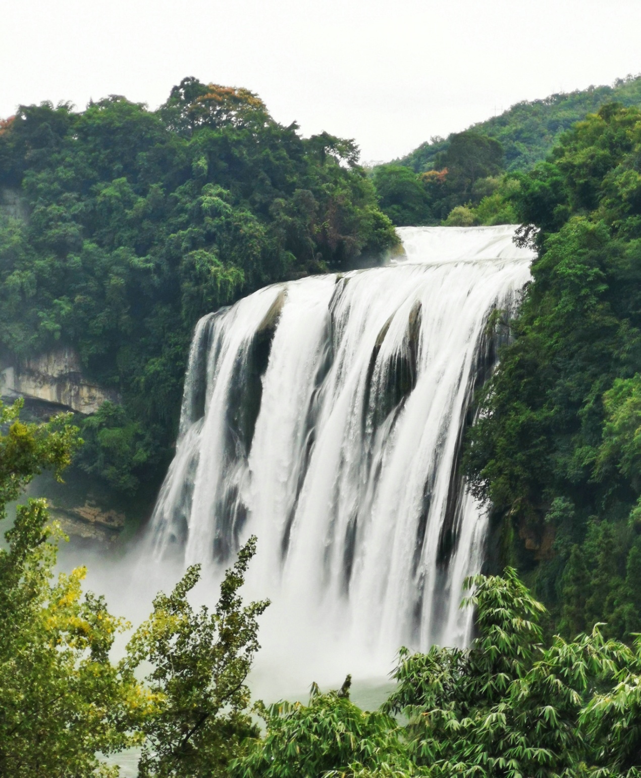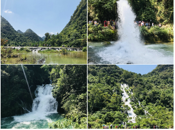 當黃果樹瀑布出現(xiàn)在我們眼前的那一刻,著實被這驚心動魄的場面所震撼。奔騰的河水自70多米高的懸崖絕壁上飛流直瀉犀牛潭,發(fā)出震天巨響,如千人擊鼓,萬馬奔騰,聲似雷鳴,遠震數(shù)里之外。它的壯闊恢弘,不負一世盛名。
