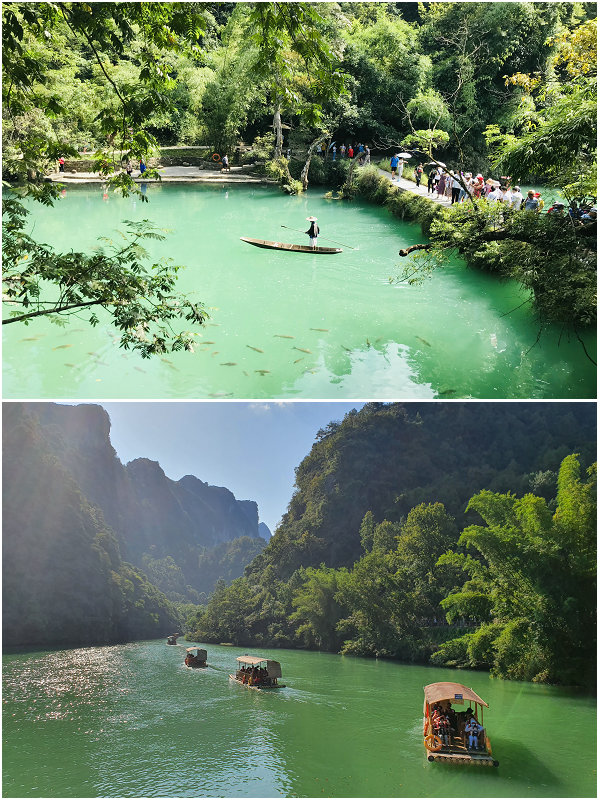 貴州的第二站,我們來到了素有“貴州小九寨”美譽的荔波小七孔景區(qū)。這里位于貴州省黔南布依族苗族自治州荔波縣西南部,因景區(qū)響水河上橫跨著一座青石砌成的七孔拱橋而得名。景區(qū)內(nèi)峰巒疊嶂,溪流縱橫,景物景觀動靜相間,剛柔并濟,既有奇、幽、俊、秀、古、野、險、雄的自然美,又有濃郁的布依、水、瑤、苗等民族風情融為一體,使得小七孔景區(qū)名聲大震。沿著景區(qū)步道一路向東,途徑臥龍?zhí)丁⒋涔绕俨?、水上森林、拉雅瀑布和小七孔石橋,每到一處,都讓人耳目一新,感嘆大自然的鬼斧神工。拋開工作的繁忙,生活的瑣碎,這里的確是放松身心、凈化心靈的絕佳之處。