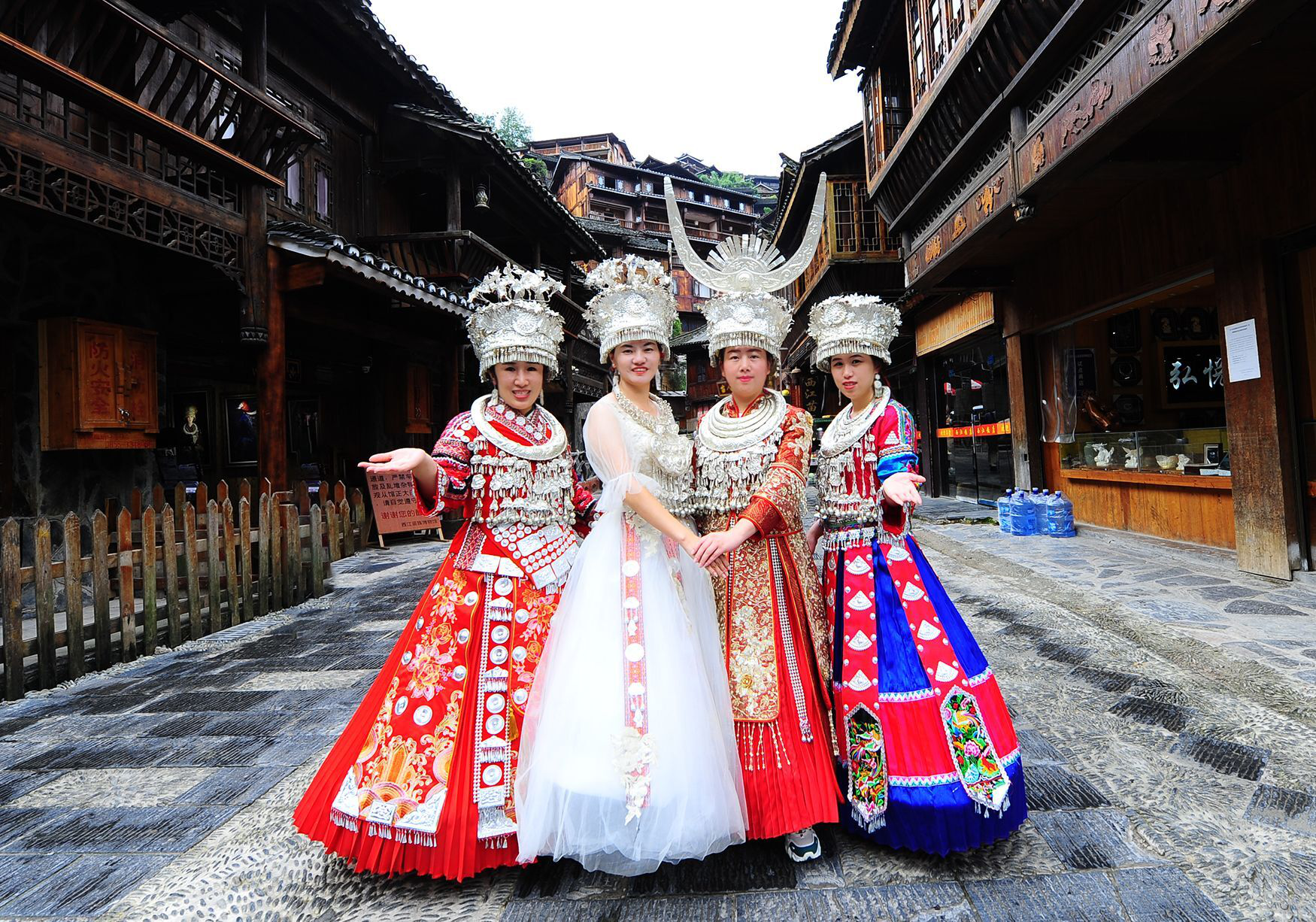 走進西江千戶苗寨,立馬感受到一股濃濃的苗族風情。穿寨而過的白水河兩側的苗族吊腳樓,依山層疊,沿著白水河一路閑逛,可看見白水河上有五座可遮風擋雨的風雨橋。來到演藝場,正好趕上一場歌舞表演,正午明亮的陽光下,漂亮的苗族姑娘那清亮的歌聲,歡快的舞蹈,特別是一群老人那無伴奏多聲部苗族大歌,令人震撼。值得一提的是,這些演員都是苗寨當?shù)卮迕瘛?/span>