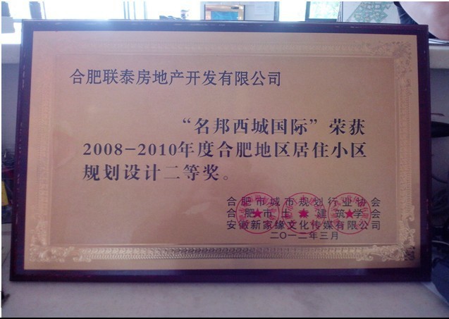 名邦地產(chǎn)再一次以事實(shí)證明了自身的強(qiáng)勁實(shí)力與品牌優(yōu)勢,在本次評(píng)選中我公司開發(fā)建設(shè)的“名邦·西城國際”項(xiàng)目榮獲“2008-2010年度合肥地區(qū)居住小區(qū)規(guī)劃設(shè)計(jì)二等獎(jiǎng)”。