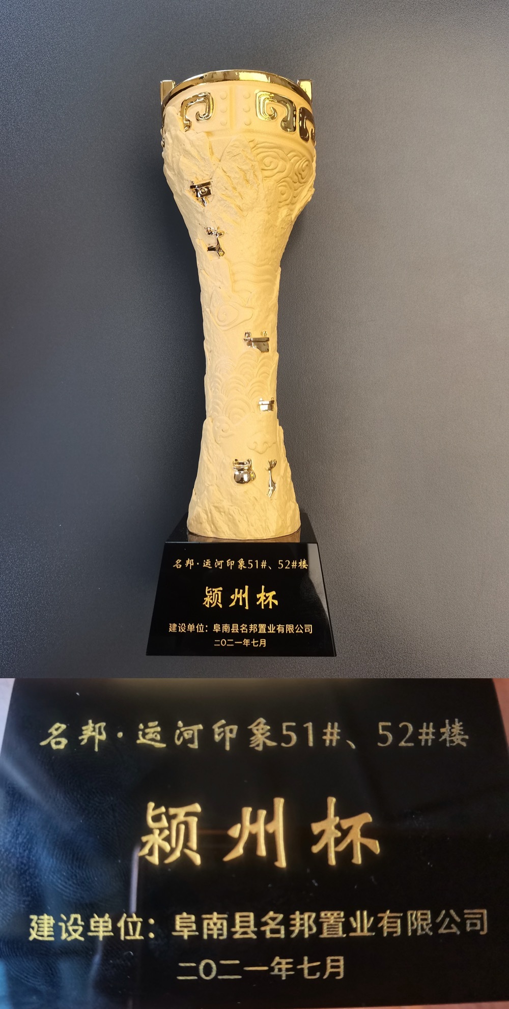 2021年7月12日,經(jīng)過一系列嚴(yán)格的工程質(zhì)量評比,阜南名邦•運(yùn)河印象51#、52#樓榮獲2021年度阜陽市建設(shè)工程“潁州杯”獎(jiǎng)(市優(yōu)質(zhì)工程),為名邦地產(chǎn)在阜陽地區(qū)市場的良好口碑再添新獎(jiǎng)。