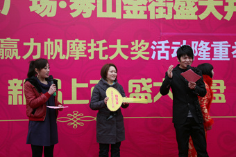 2010年元月31日,名邦·秀山美地展示中心門前彩旗飄揚(yáng),人潮涌動(dòng),名邦地產(chǎn)三喜臨門。喜洋洋婚慶廣場(chǎng)、秀山金街盛大開街了,同時(shí)也是喜洋洋婚慶廣場(chǎng)、秀山金街舉辦的新春購(gòu)物“周周贏力帆摩托大獎(jiǎng)”活動(dòng)的首周抽獎(jiǎng)(1月24日至30日在喜洋洋婚慶廣場(chǎng)、秀山金街消費(fèi)購(gòu)物的顧客們)、頒獎(jiǎng)日,名邦地產(chǎn)迎新春、推新品,秀山苑85—102平米稀缺多層花園洋房、秀山金街20—80平米稀缺沿街獨(dú)立旺鋪火爆開盤的日子。