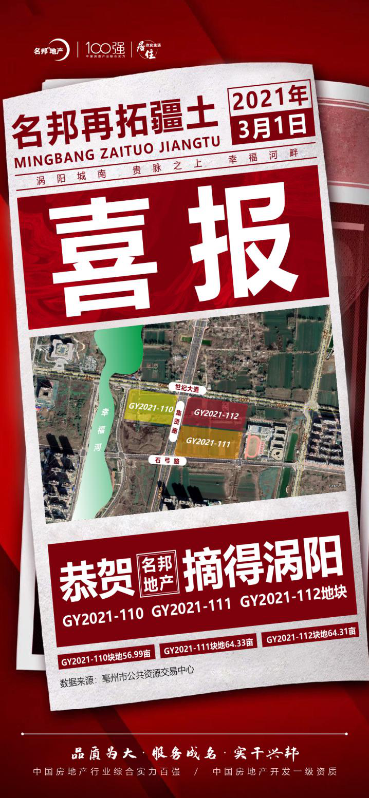 喜報(bào)!名邦地產(chǎn)豪攬渦陽城南三宗核心地塊