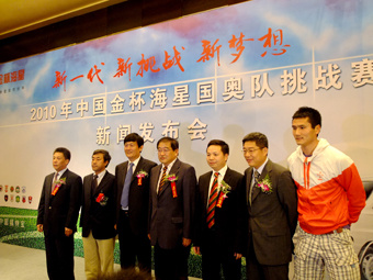 5月31日,“金杯海星冠名2010年中國國奧隊(duì)挑戰(zhàn)賽”新聞發(fā)布會(huì)在北京萬豪酒店隆重舉行。至此,盛傳已久的國奧隊(duì)贊助商終于揭開神秘面紗走到臺(tái)前,國奧隊(duì)挑戰(zhàn)中超的賽事安排也因此塵埃落定。