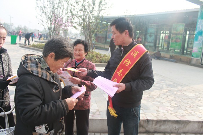 蒙城名邦消防志愿者自告奮勇深入各街道散發(fā)消防宣傳手冊(cè),助陣“119”消防宣傳活動(dòng)。