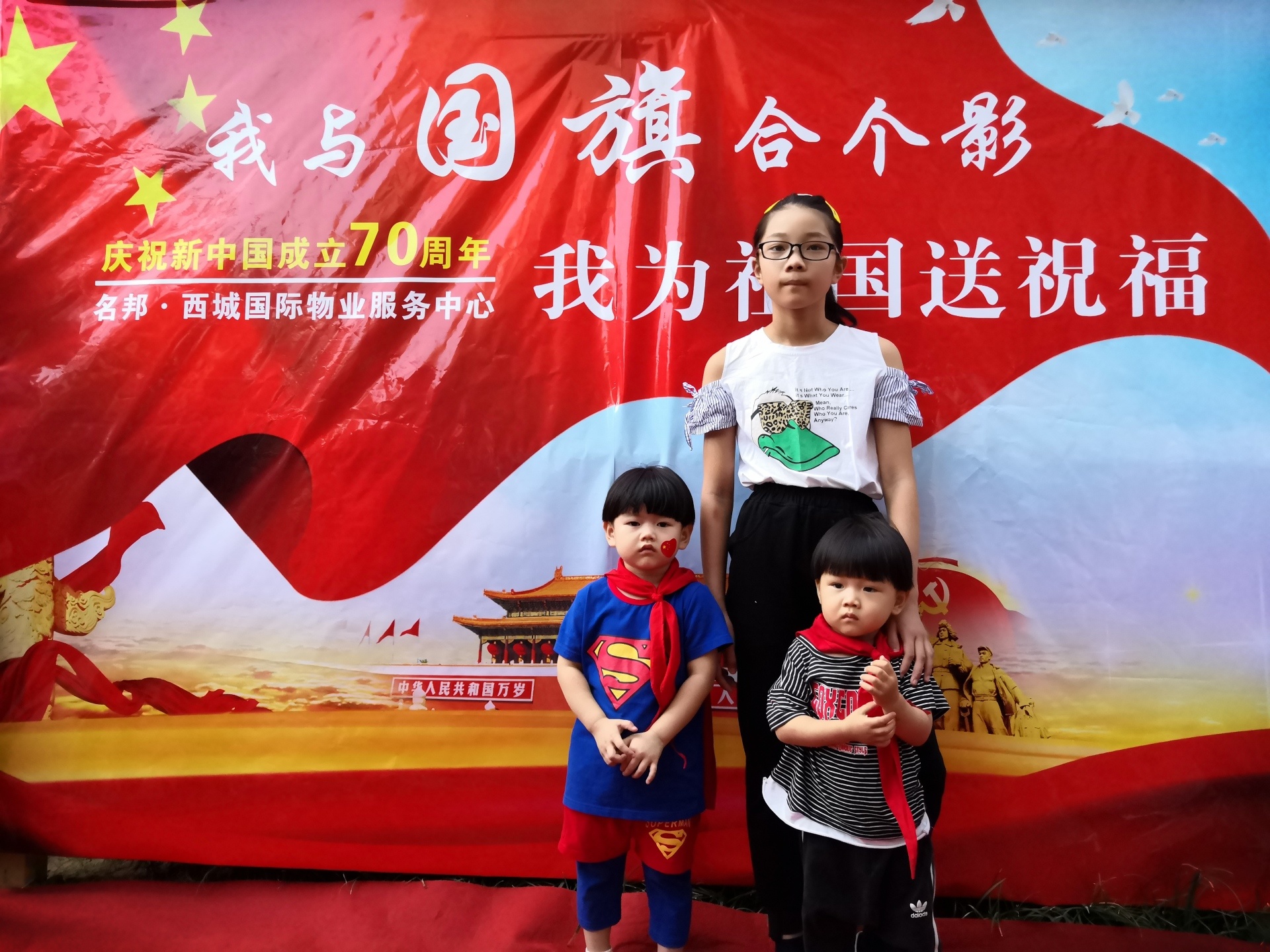 10月1日當天,名邦物業(yè)各項目不僅為小區(qū)穿上了國旗的盛裝,還為業(yè)主們放映了紅色電影,以電影記錄祖國母親70年來辛苦奮斗的過程,給業(yè)主們免費發(fā)放小紅旗及愛心國旗標貼?,F(xiàn)場還制作了“我與國旗合個影,我為祖國送祝?!钡膰毂尘澳徊?,讓每一位到場的業(yè)主都能與國旗同框,與國旗合影。無論是青蔥少年還是耄耋老人,懷著崇敬之心,以自己獨有的方式和國旗留下了美好的瞬間,表達自己對祖國的熱愛。一位帶著孩子的業(yè)主媽媽表示:“‘我與國旗合個影’活動很有教育意義,讓孩子感受到愛國熱情,一定要留影做個紀念”。其他的業(yè)主也表示:這是慶祝中華人民共和國成立七十周年最有意義的方式。