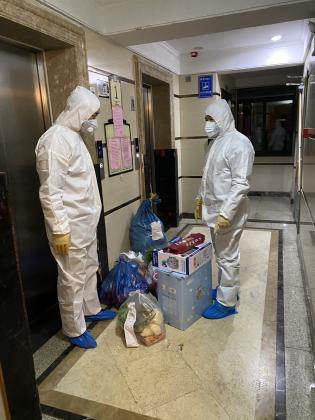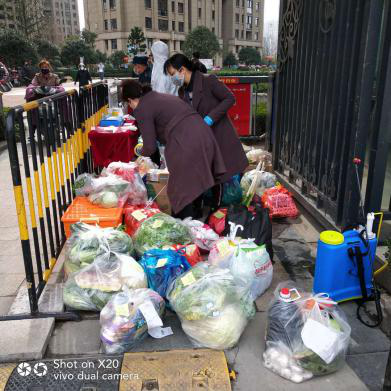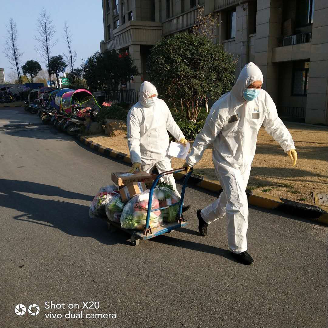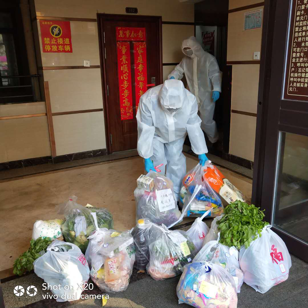 隔離業(yè)主出不了門,由社區(qū)采購(gòu)或業(yè)主自行網(wǎng)購(gòu)的物資,下午兩點(diǎn)半集中收至門崗后由專項(xiàng)責(zé)任人穿防護(hù)服、護(hù)目鏡、戴口罩每?jī)商爝M(jìn)行一次集中派送,保證業(yè)主的生活供給。近700人的生活物資,分揀派送難度、工作量可想而知,他們沒(méi)有一絲怨言,整個(gè)團(tuán)隊(duì)主動(dòng)放棄休假,一群人從白天忙到黑夜,才完成一次派送。