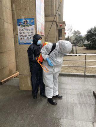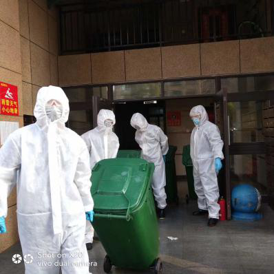 每日垃圾清運(yùn)結(jié)束,由專人負(fù)責(zé)本棟樓的消毒工作(包含走廊、電梯轎廂、單元門廳等),對(duì)隔離區(qū)域的各個(gè)角落反反復(fù)復(fù)仔細(xì)消毒。