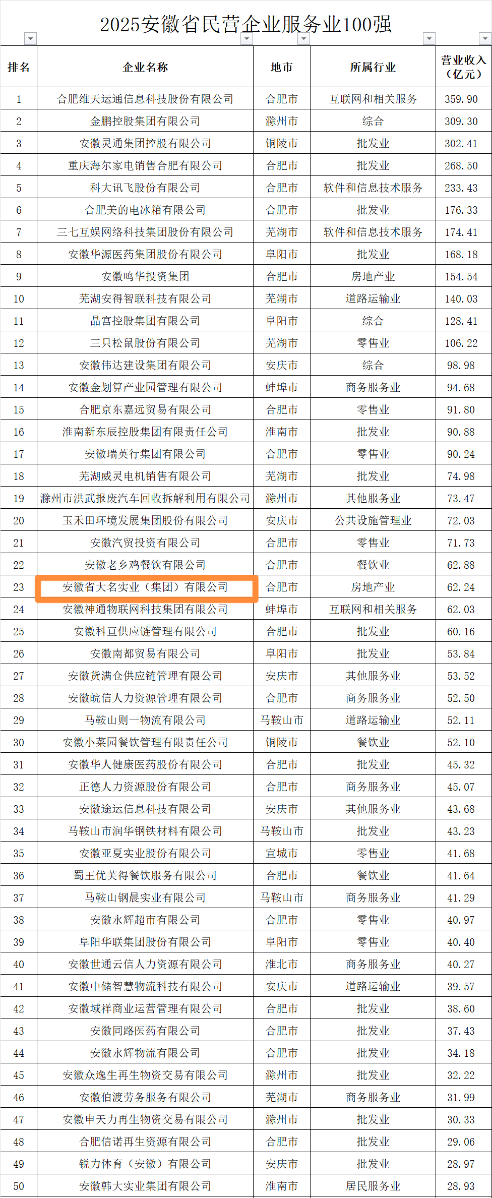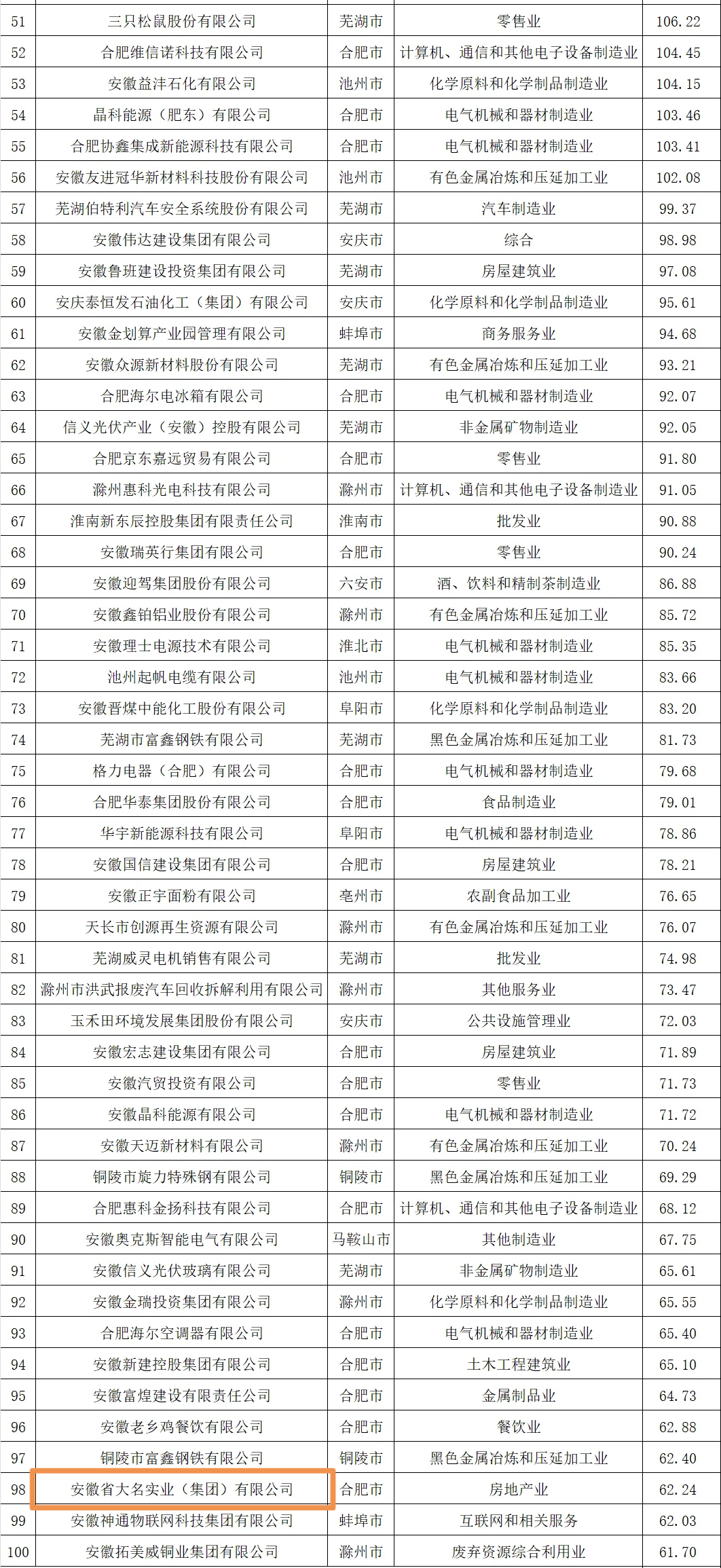 安徽大名集團(tuán)再度榮登安徽百強(qiáng)榜單!